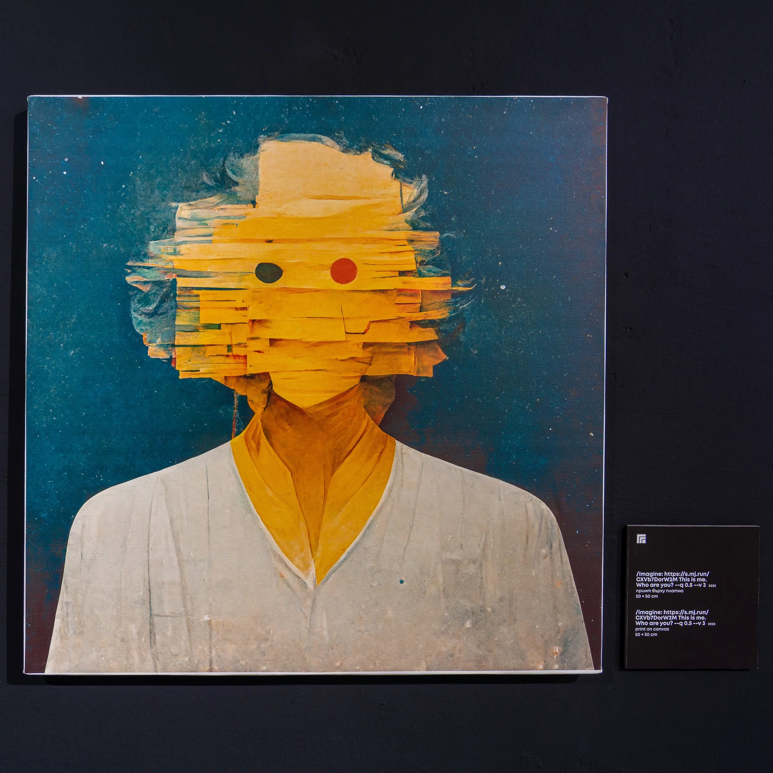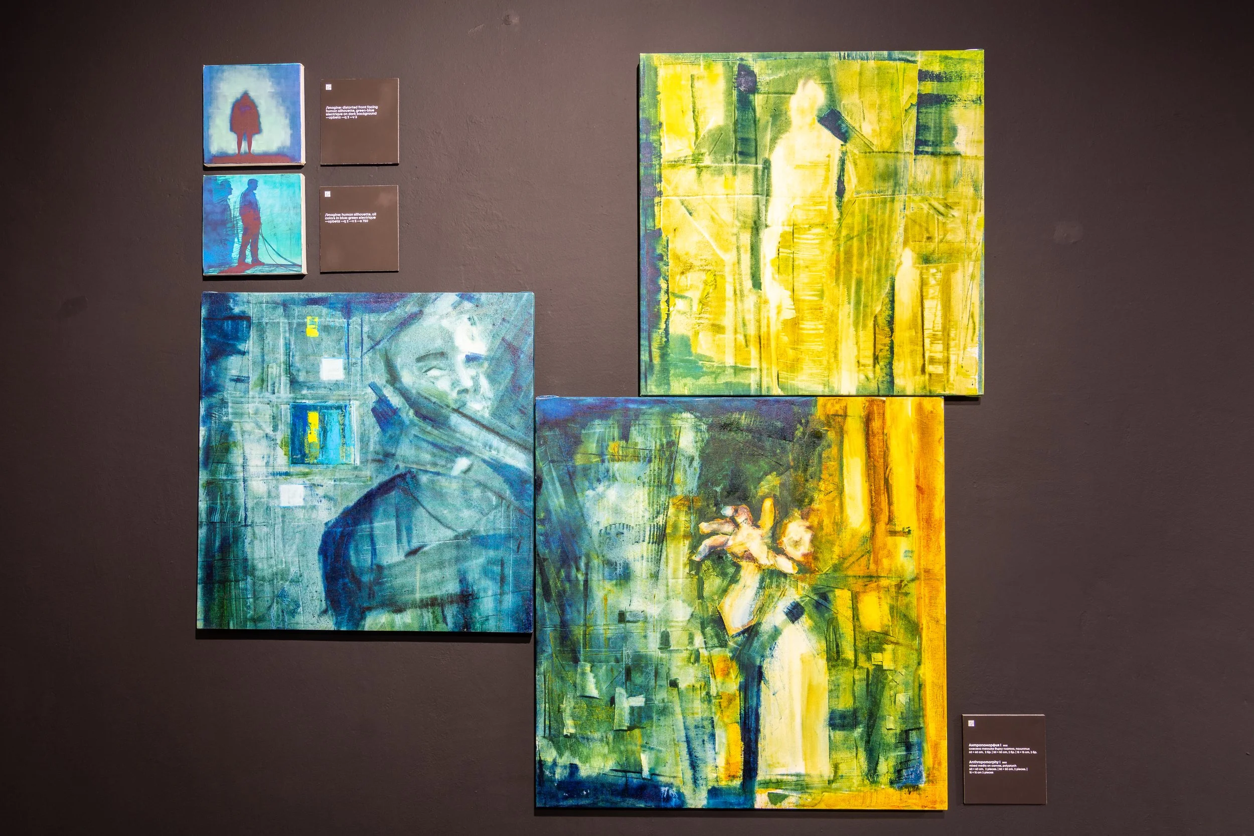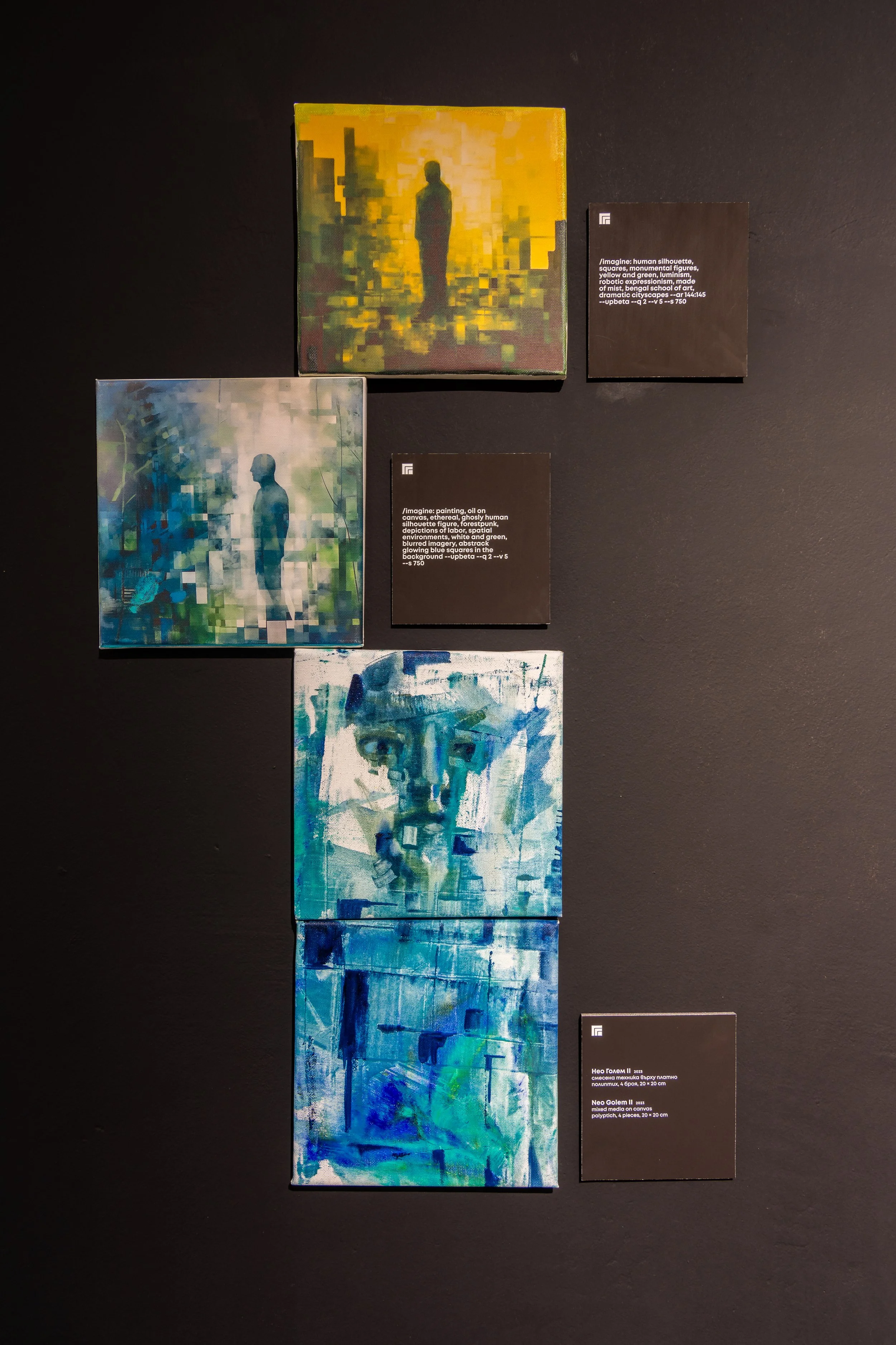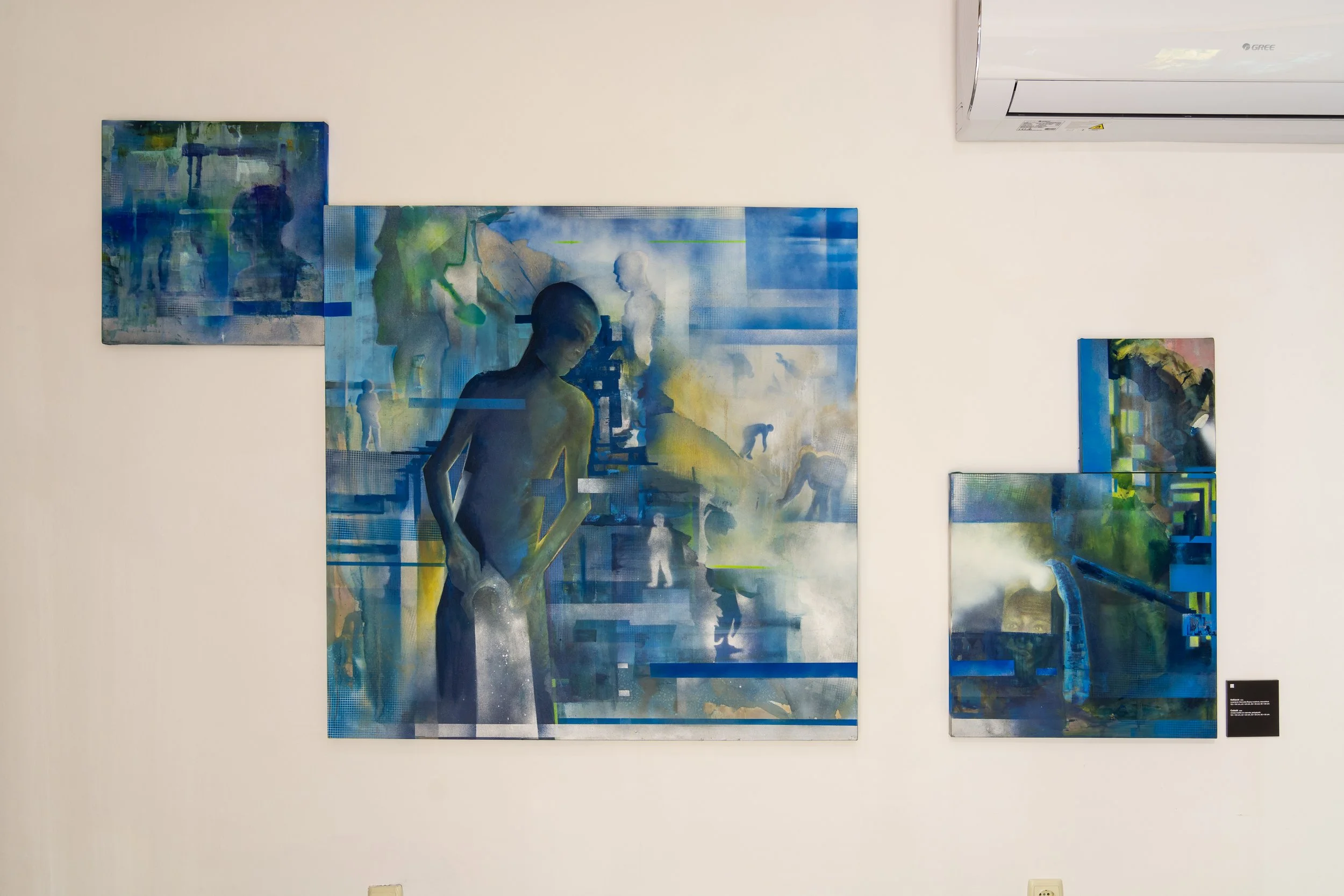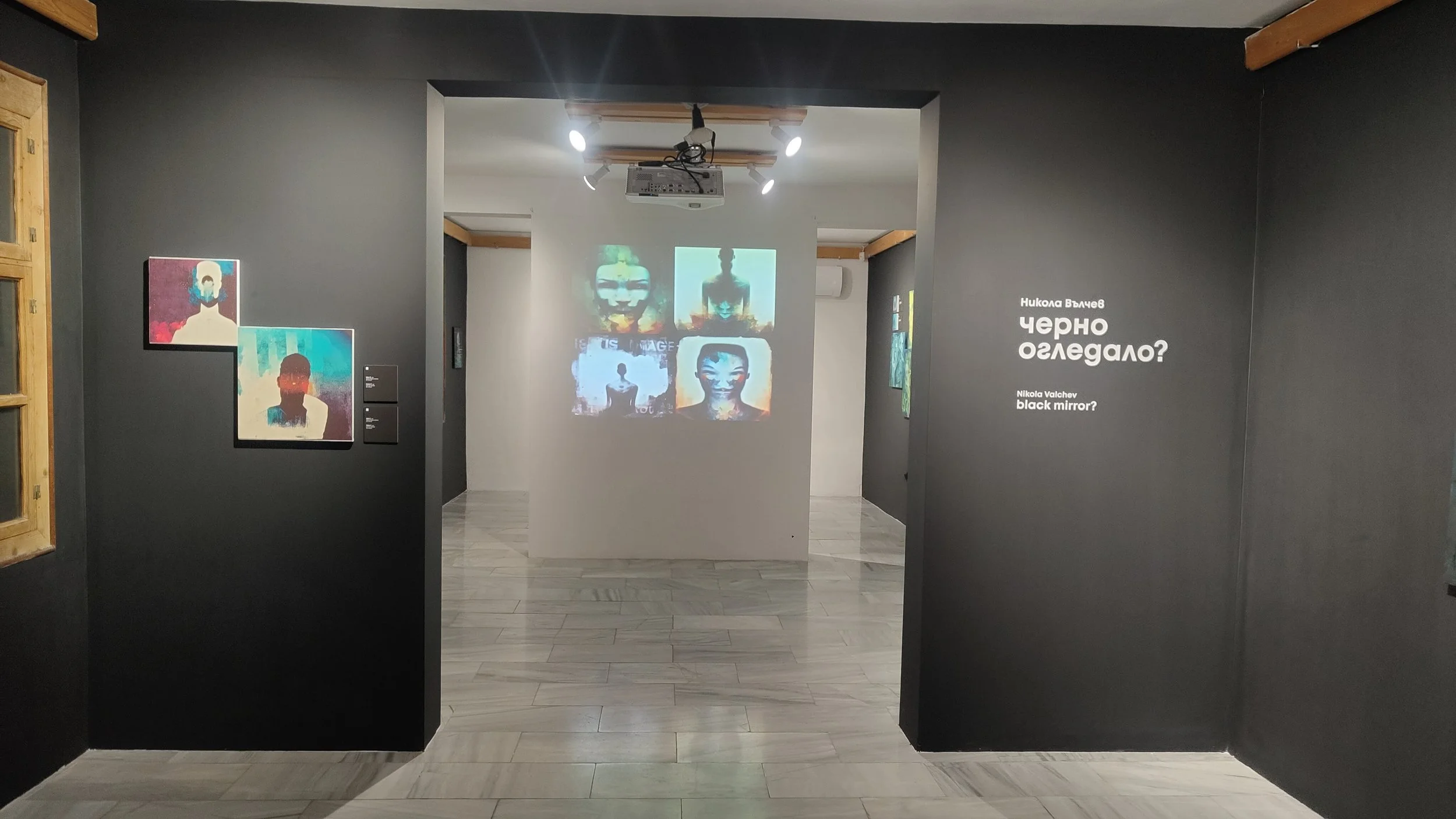 The exhibition Black Mirror” is inspired by the television series of the same name and presents us with more than 20 canvases in different formats. The artist offers us a concept that includes traditional painting and prints. The prints, in turn, were generated using the program Midjourney, which uses artificial intelligence.
