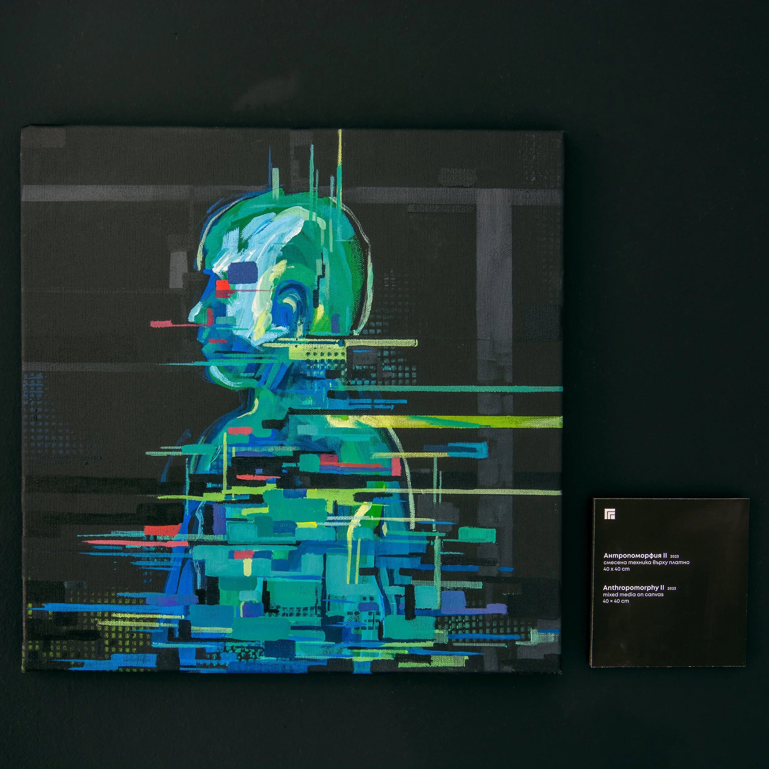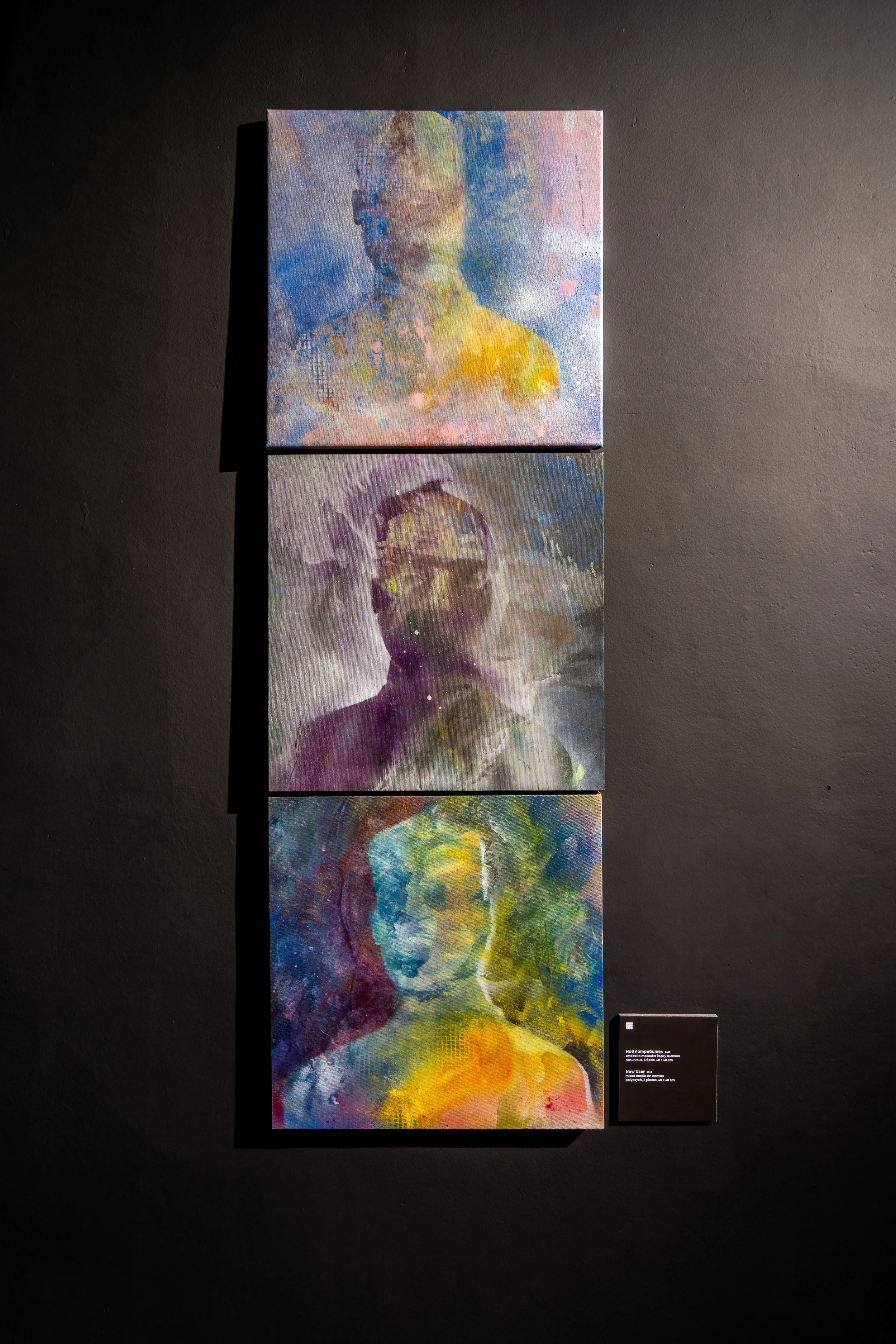Aware of the polarization of opinions on the subject, Nikola Vulchev avoids a categorical answer; he does not attempt to suggest a position, but to provide the public with the necessary visual mass to make their own comparison. The viewer is placed in a hybrid environment where the two realities coexist, left hesitant to define them and faced with the responsibility of his or her choice. The idea of the depersonalization of the personality in canvases is treated, hinting at the depersonalization of the personality in social networks. And although the exhibition does not give us ready answers, it reminds us of the cold atmosphere of synthetic technologies and the sense of worry and anxiety they bring. The viewer has a hard time trying to formulate the idea, since human error is the only difference from “unerring” artificial intelligence. A process that transforms error into a mark of authorship and creativity.